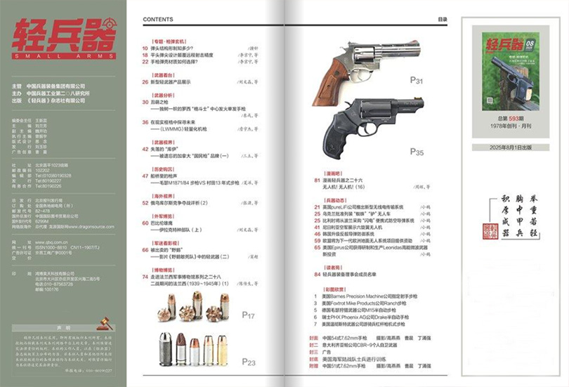 《轻兵器》杂志是一本专注于轻武器领域的大型期刊,始终秉持“传播兵器文化,推动科技创新”的办刊宗旨,以“实用、专业、权威”为特色,全面报道轻武器及其相关领域的最新动态、研究成果和技术发展趋势。